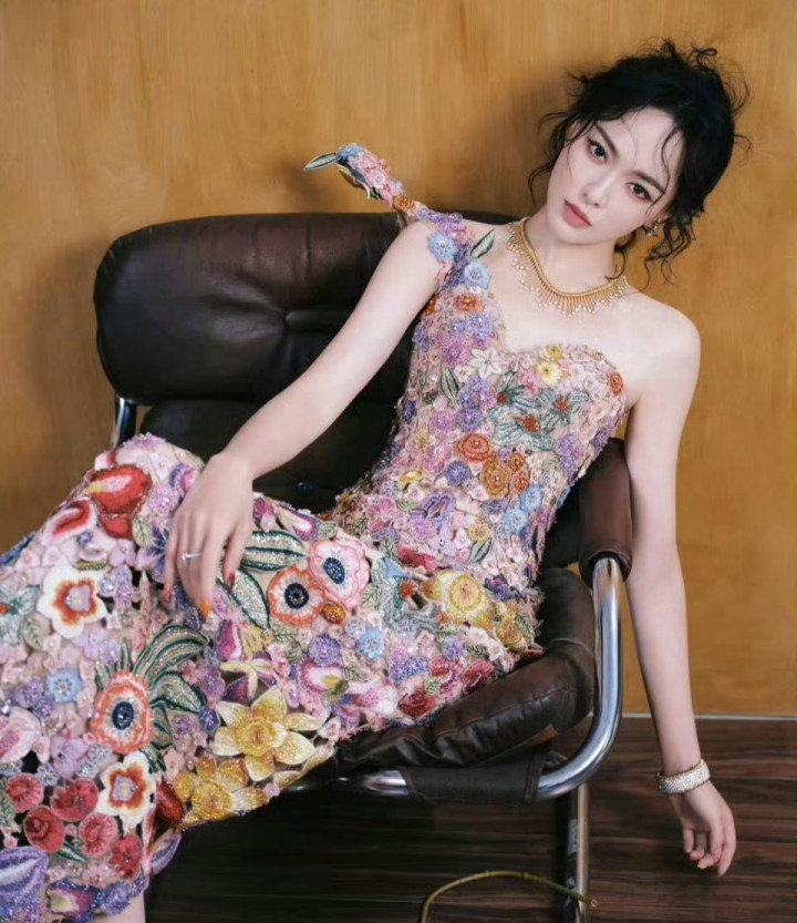 2025年盛夏,唐嫣工作室在社交平台释出一组“花神”主题大片,瞬间引爆全网热议。画面中,她身着一袭米杏与淡粉交织的针织修身花裙,漫步于爬满紫藤的复古欧式庭院,发间茉莉发簪轻颤,裙摆流苏与刺绣花朵随风摇曳,仿佛从油画中走出的花神,优雅与灵动并存。这组大片的诞生,源于唐嫣团队对“自然美学”的深度探索——他们摒弃传统棚拍,将拍摄地选在杭州某百年历史别墅,试图通过光影与服饰的碰撞,诠释“40+女性如何优雅进阶”的时尚命题。