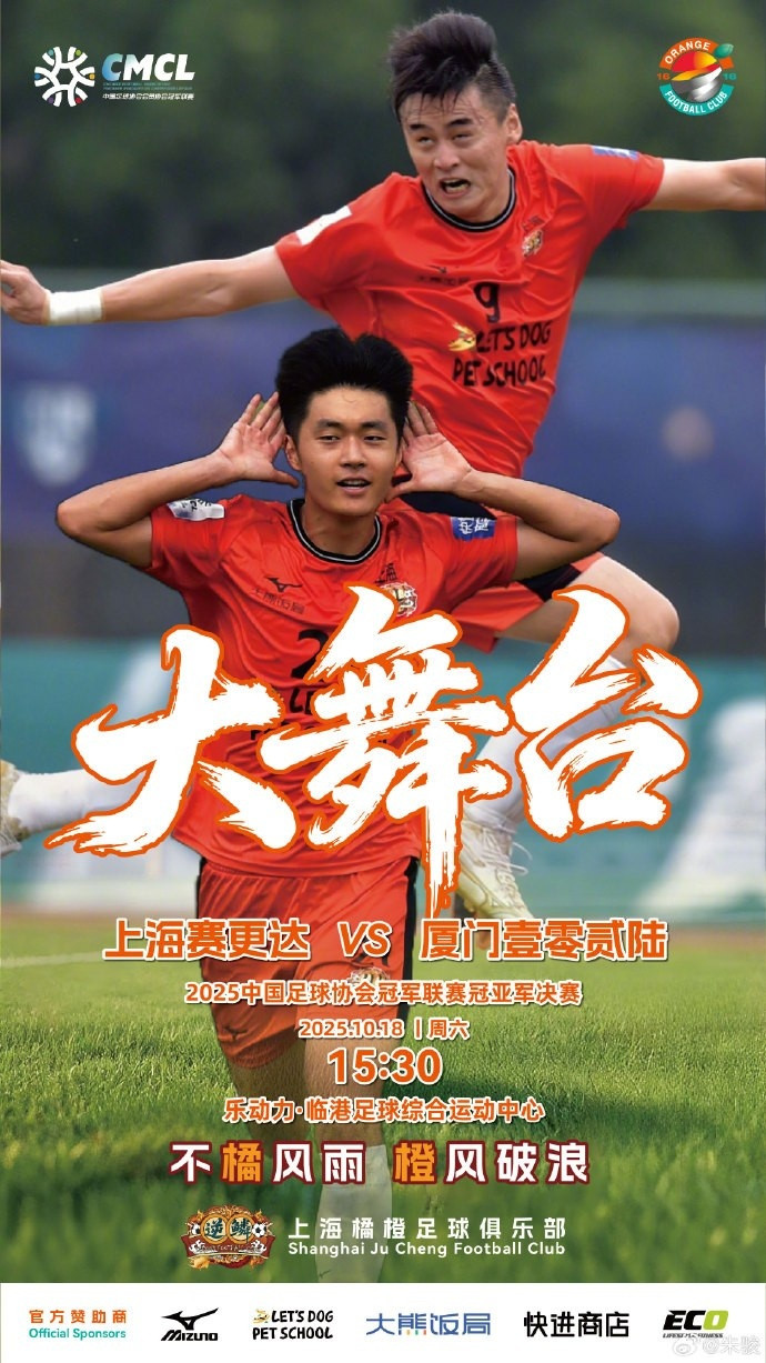 直播吧10月18日讯中冠冠亚军争夺战首回合,上海橘橙将对阵厦门壹零贰陆。