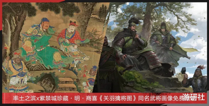 与此同时,两幅故宫典藏画像——《洛神赋图》和《关羽擒将图》首次以游戏画像的形式亮相,且完全免费回馈给玩家;联动行军外观参考了明代历史名画中“大汉将军”的服饰。