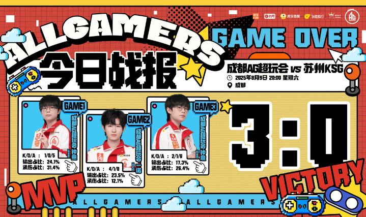 今日胜局的MVP给到了成都AG钟意和AG一诺
