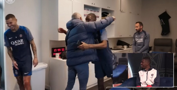 登贝莱:嗯,就像我从一开始就说的,他信任我。他对我好得难以置信,而且就像我说的,他唱那首"奥斯曼金球奖"已经唱了三个月了,每次见到我都唱,所以这很让人开心。他从一开始就给予我的所有信任,我努力在球场上回报。