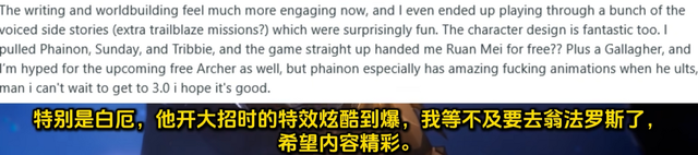 被剧情硬控的他,瞬间成为了一名剧情党。尤其是在看到白厄的炫酷大招后,他决定努力追赶剧情进度,想尽快进入3.0版本,体验到好评如潮的翁法罗斯剧情。