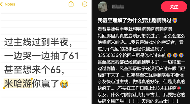 还有一位玩家,最初仅为白厄回坑,却被翁法罗斯剧情感动落泪,主线进度缓慢,用了3天才看到那刻夏的高光时刻,也不知道当这位玩家看到3.4版本的精彩剧情时,得耗费多少纸巾。