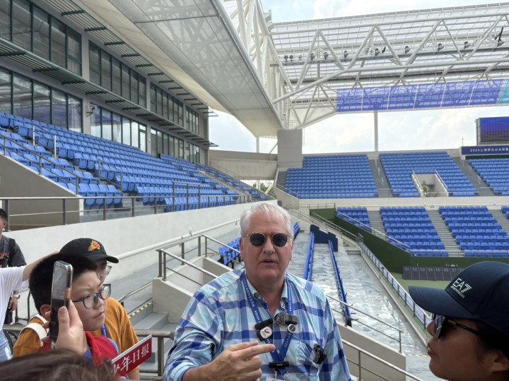 ATP赛事顾问委员会代表施成伟在现场为媒体进行介绍,他惊叹整个工程7个月就全部完工。